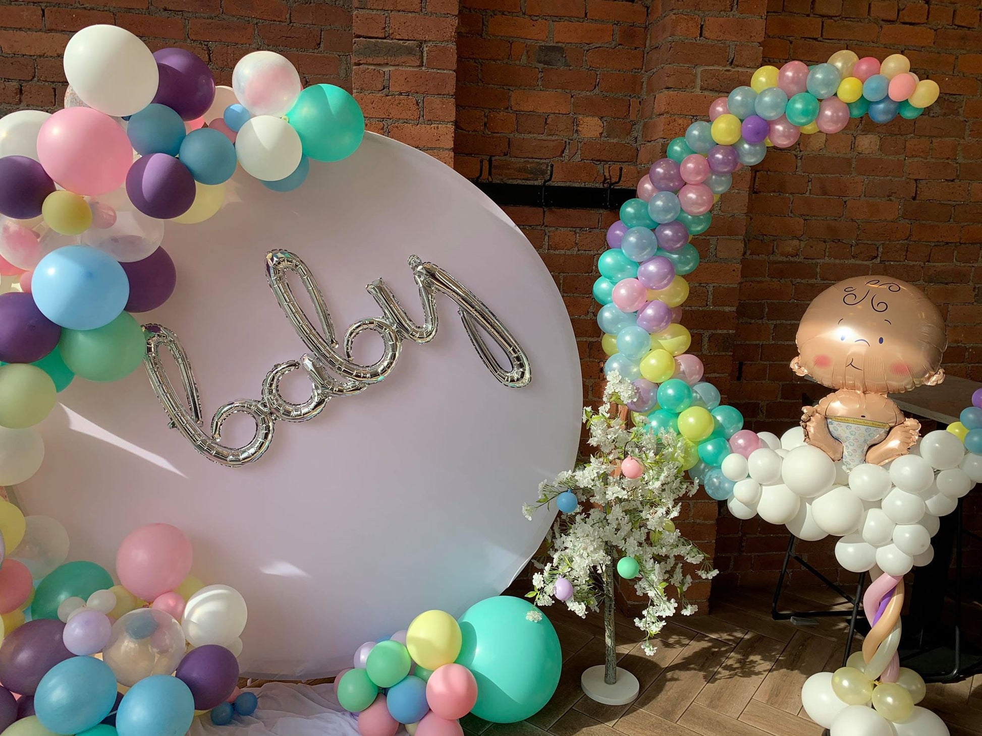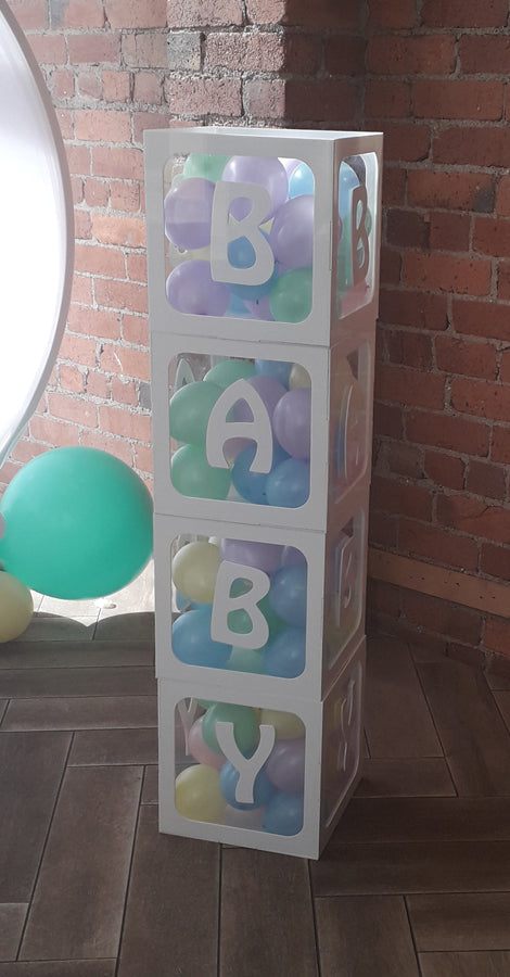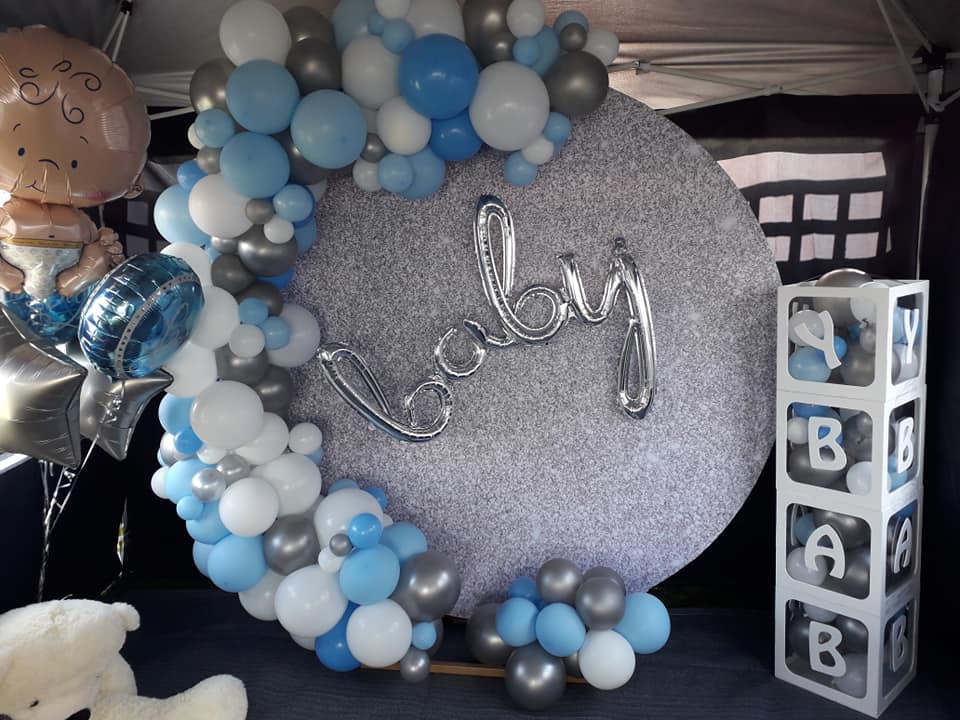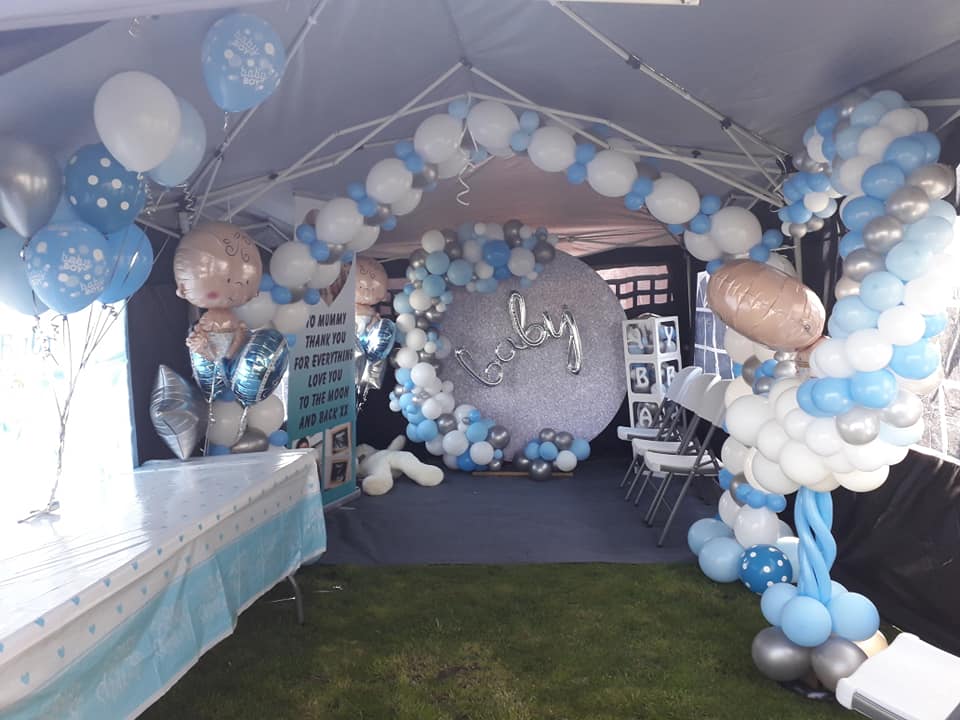 Baby Occasions Package - This includes a round Backdrop with balloon garland, baby phrase, Moon Baby which is on a stand so you can move for photos & Baby Boxes filled with matching colours. This is a great package for any baby occasion.