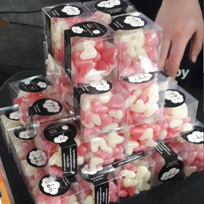 These little boxes can be filled with your favourite sweets and used for a Corporate Event, A Party Favour, a thank you gift and so many other ideas. These are approx 5cm diamater